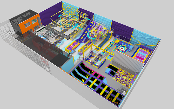 | Project Location: Myanmar Project Area: 1000㎡ Project positioning: A family social space that combines "light adventure and deep interaction" Target Customers: Middle-class families + youth groups Style Theme: A unique jungle adventure theme Core functional area: Trampoline area, soft play area and high-altitude adventure area